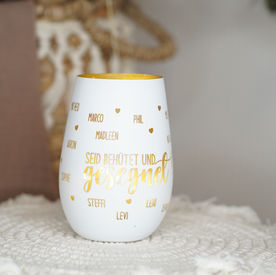 Diese Windlichter sind ein wunderschönes persönliches Geschenk zur Geburt, zur Hochzeit, zum Geburtstag oder als Geschenk zu Weihnachten. Die Texte können individuell angepasst werden. Mit einer Lichterkette oder einem Teelicht erstrahlt das Windglas in einem besonderem Licht. Teelichter auf keinen Fall unbeaufsichtigt lassen. Die Windlichter sind kein Spielzeug!